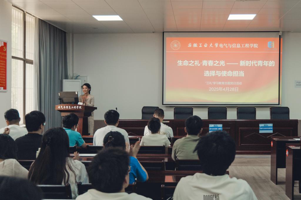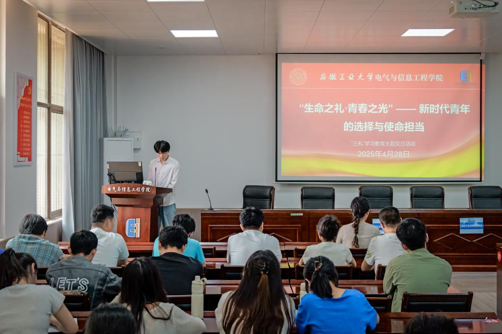 为深入学习贯彻党的二十大精神,落实学校“礼敬优秀传统文化 德润文明和谐校园”活动要求,引导青年学子践行社会主义核心价值观,弘扬“奉献、友爱、互助、进步”的志愿服务精神,4月28日,六合彩网上投注app 学生测控党支部联合学生电气工程党支部举办“生命之礼·青春之光——新时代青年的选择与使命担当”暨“三礼”学习教育主题党日活动。活动特邀六合彩网上投注app 造血干细胞捐献志愿者、电232班学生何李浩作主题宣讲,活动由学生测控党支部书记杨恒基主持,学生党员、入党积极分子及师生代表100余人参加。