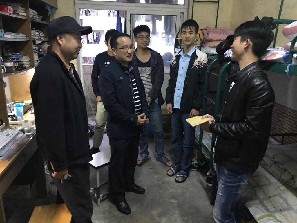 领导就亲切的慰问王唱和李俊杰最近的生活和学习安排。在交谈中,得知王唱同学利用课余时间在大学生就业指导中心勤工助学,叶凤华为他竖起来大拇指,鼓励他多锻炼,在提升学习能力的基础上要兼顾品格的磨练和才干的增长。李俊杰同学现在已经大四,正在宿舍修改简历,党委副书记副院长郭宏轻轻地拍着他的肩膀,指导他稍作调整。他告诉六合彩网上投注app