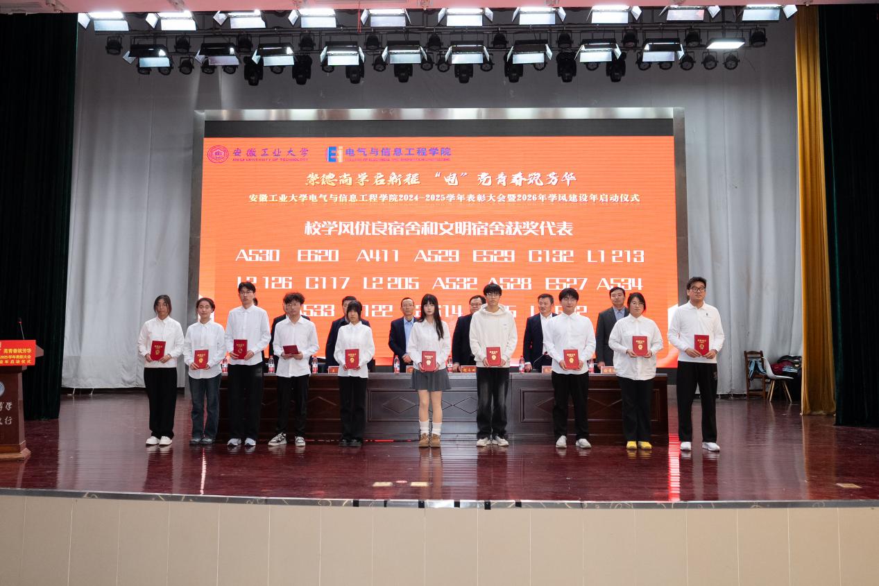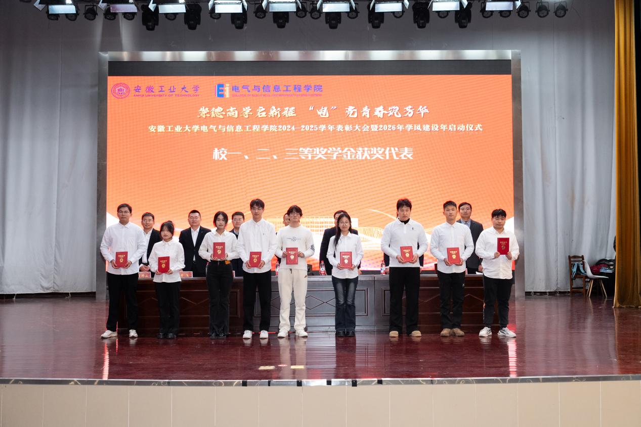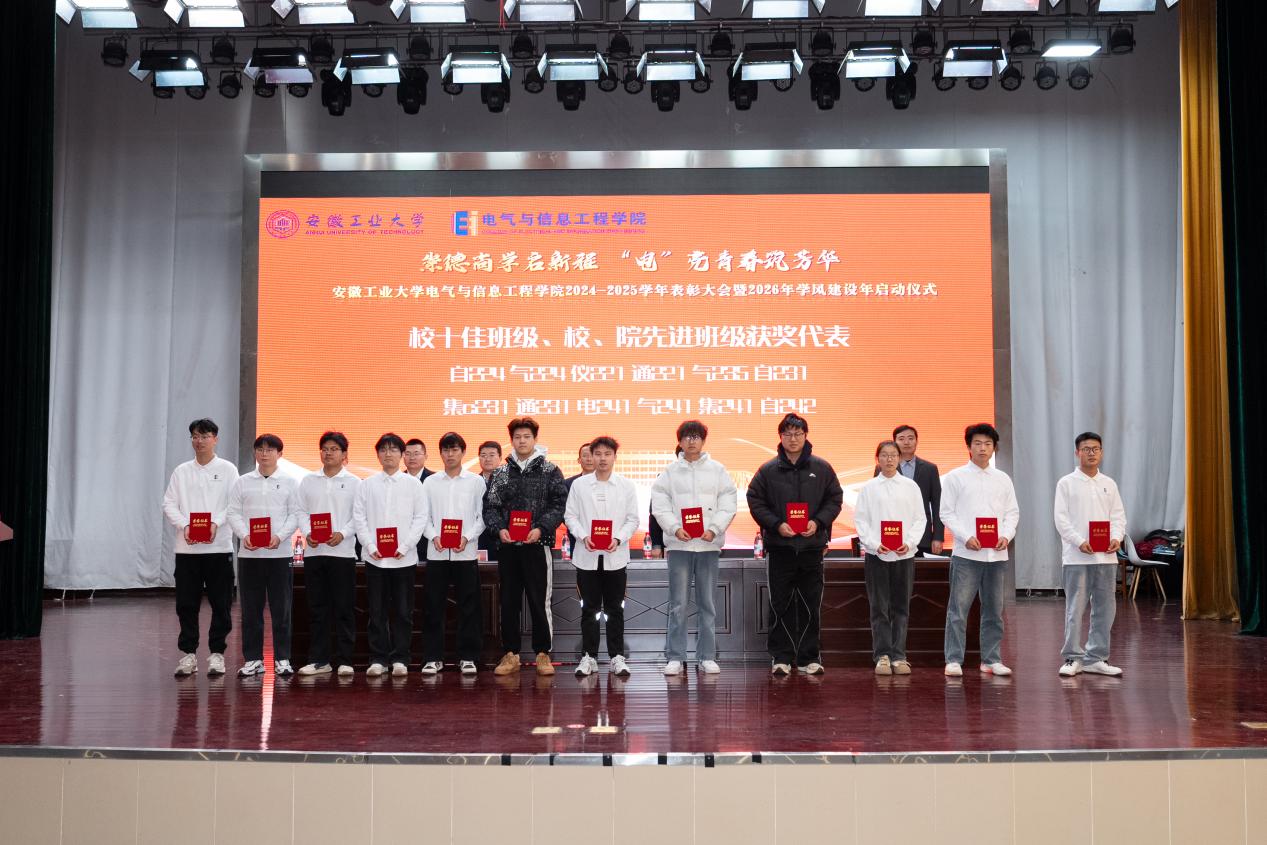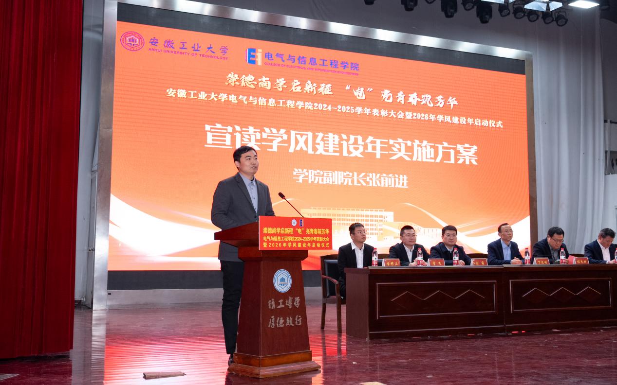 为表彰先进,凝聚奋进力量,深化学风建设,12月31日下午,六合彩网上投注app 以“崇德尚学启新程,‘电’亮青春筑芳华”为主题,在秀山校区新大学生活动中心报告厅隆重举办2024-2025学年表彰大会暨2026年学风建设年启动仪式。学生工作部副部长王萌、六合彩网上投注app 党委书记丁忠利、副院长(主持工作)程木田、党委副书记、纪委书记、副院长孔洋波、副院长李飞、副院长张前进等领导出席会议,六合彩网上投注app 全体辅导员及学生代表共计400余人齐聚现场,共同见证荣耀时刻,共绘学风建设新蓝图。