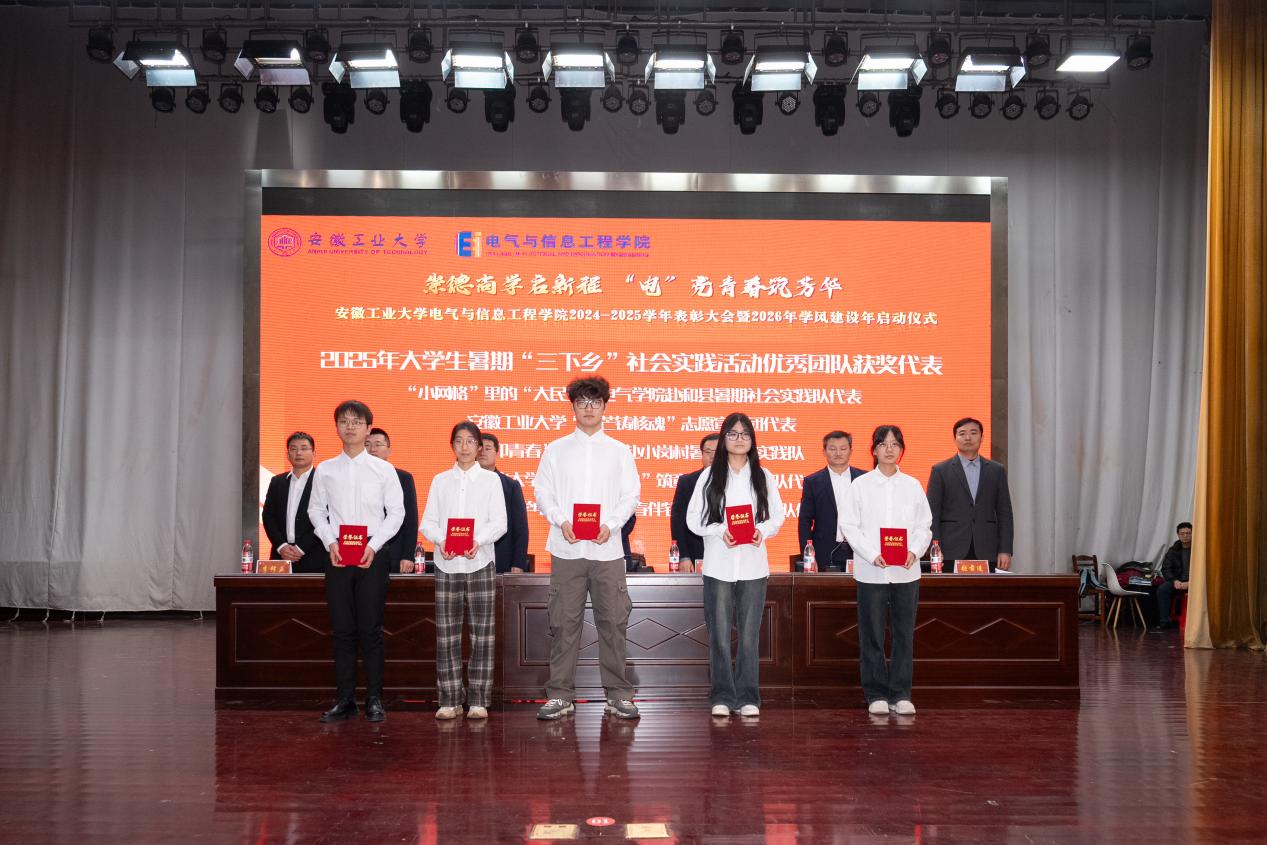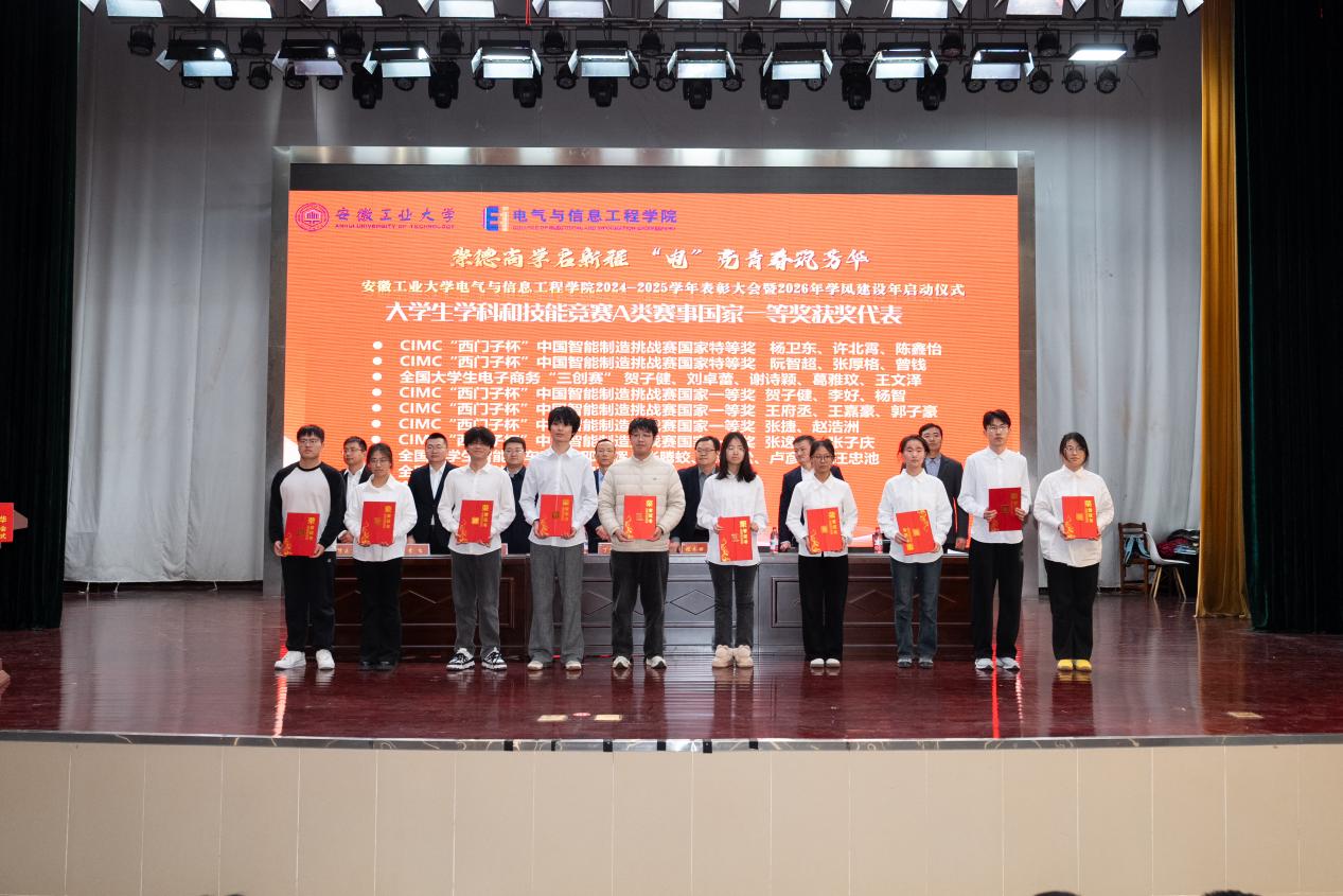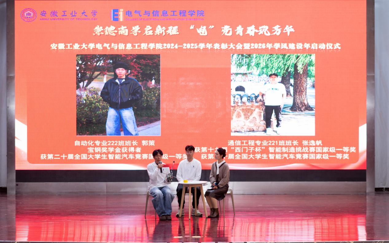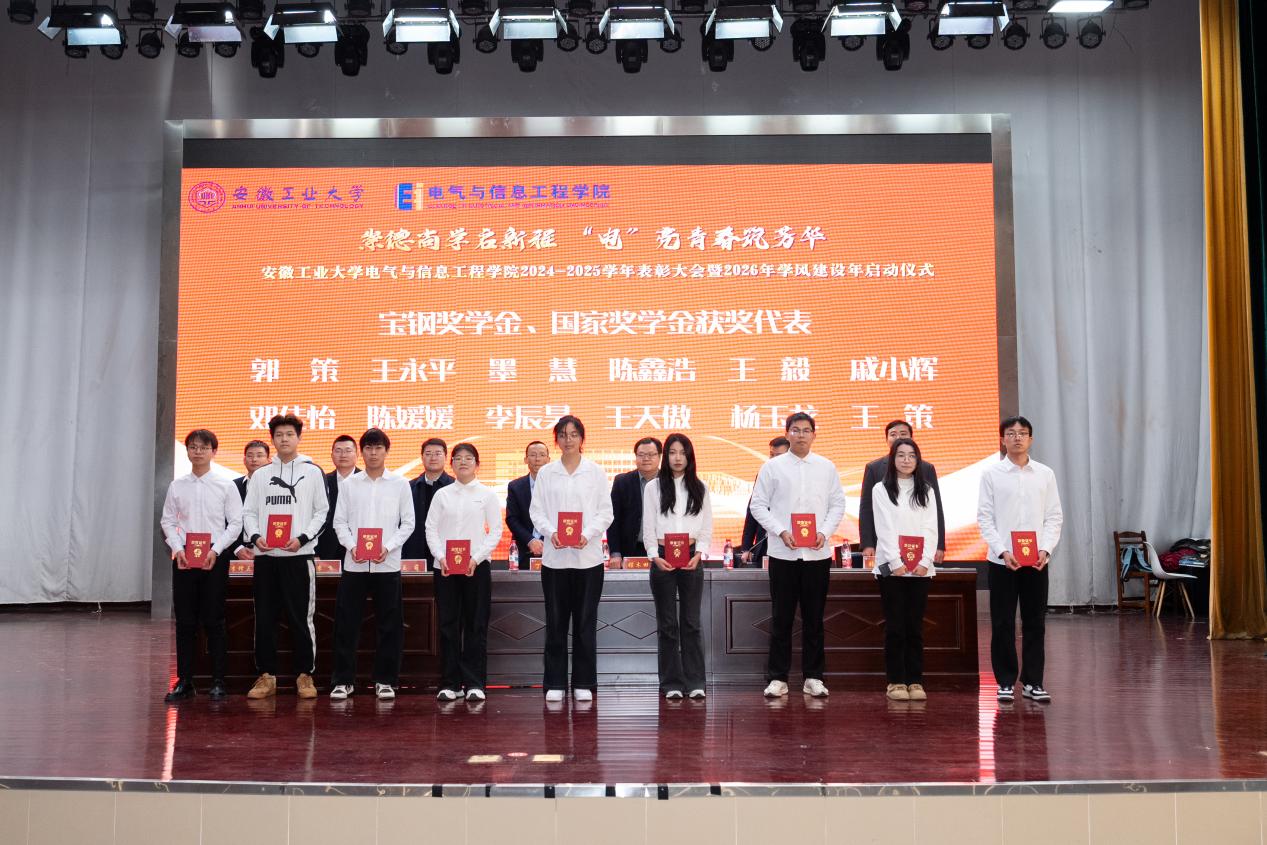 为表彰先进,凝聚奋进力量,深化学风建设,12月31日下午,六合彩网上投注app 以“崇德尚学启新程,‘电’亮青春筑芳华”为主题,在秀山校区新大学生活动中心报告厅隆重举办2024-2025学年表彰大会暨2026年学风建设年启动仪式。学生工作部副部长王萌、六合彩网上投注app 党委书记丁忠利、副院长(主持工作)程木田、党委副书记、纪委书记、副院长孔洋波、副院长李飞、副院长张前进等领导出席会议,六合彩网上投注app 全体辅导员及学生代表共计400余人齐聚现场,共同见证荣耀时刻,共绘学风建设新蓝图。