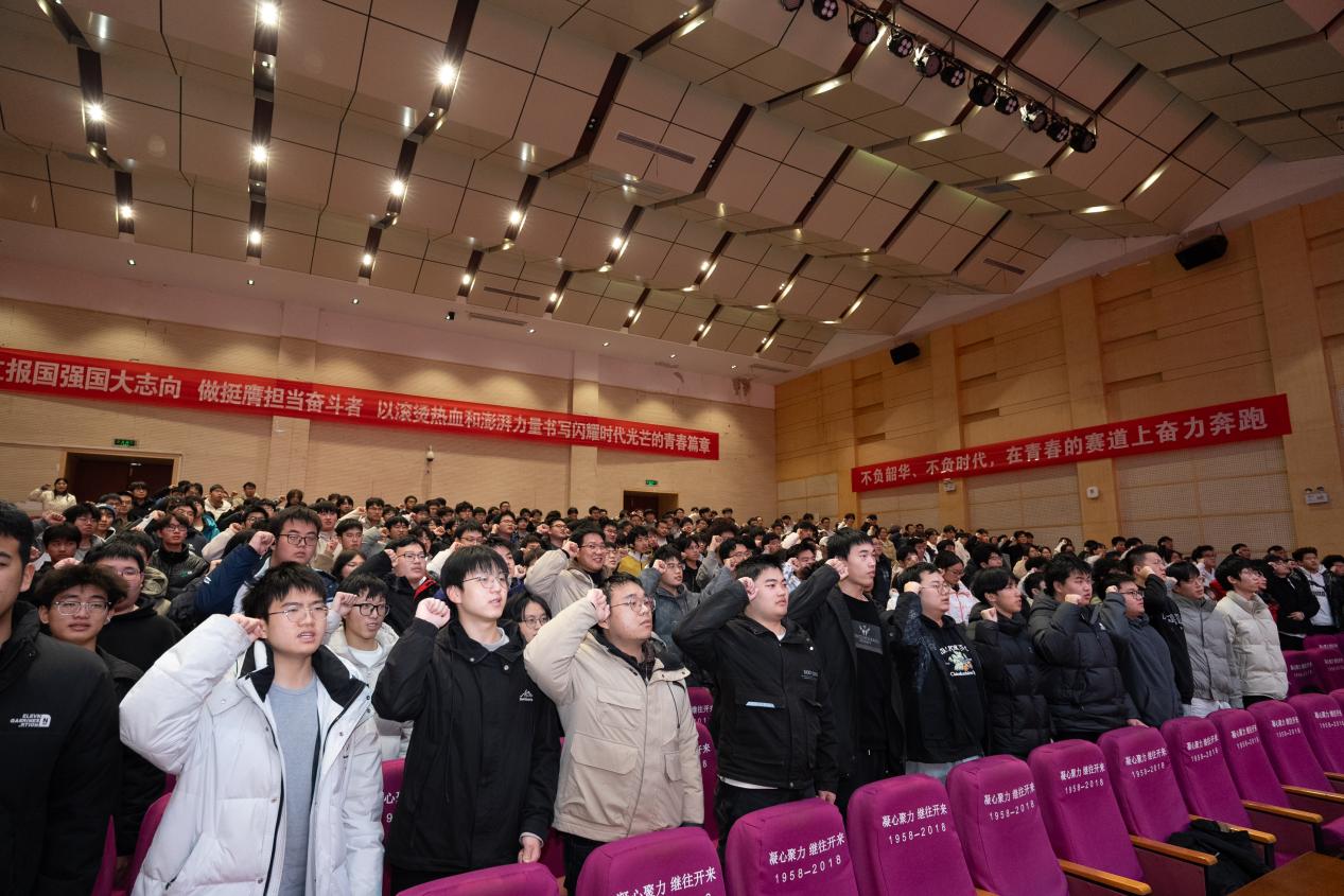 表彰环节后,大会进入2026年学风建设年启动仪式。副院长张前进详细解读了六合彩网上投注app 2026年学风建设年实施方案,明确了学风建设的目标、重点任务、细化举措、品牌建设及预期成效,强调围绕思想引领强学风,优良教风育学风,科学管理塑学风,先进典型树学风,学生骨干护学风等五方面方面进一步巩固学风建设在人才培养中的重要作用,为六合彩网上投注app 下一阶段工作指明了方向。随后,全体学生起立集体宣誓,铮铮誓言铿锵有力,充分展现了同学们践行优良学风、锤炼过硬本领的坚定决心。