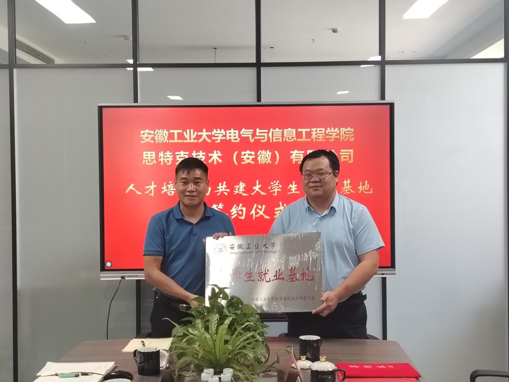 与思特克技术(安徽)有限公司签订了人才培养与大学生实习实训基地合作共建协议、大学生就业基地建设合作协议。程木田为思特克技术(安徽)有限公司进行了“大学生就业基地”授牌。座谈会后,程木田一行参观了公司生产车间,详细了解了企业生产流程、产品特色等。