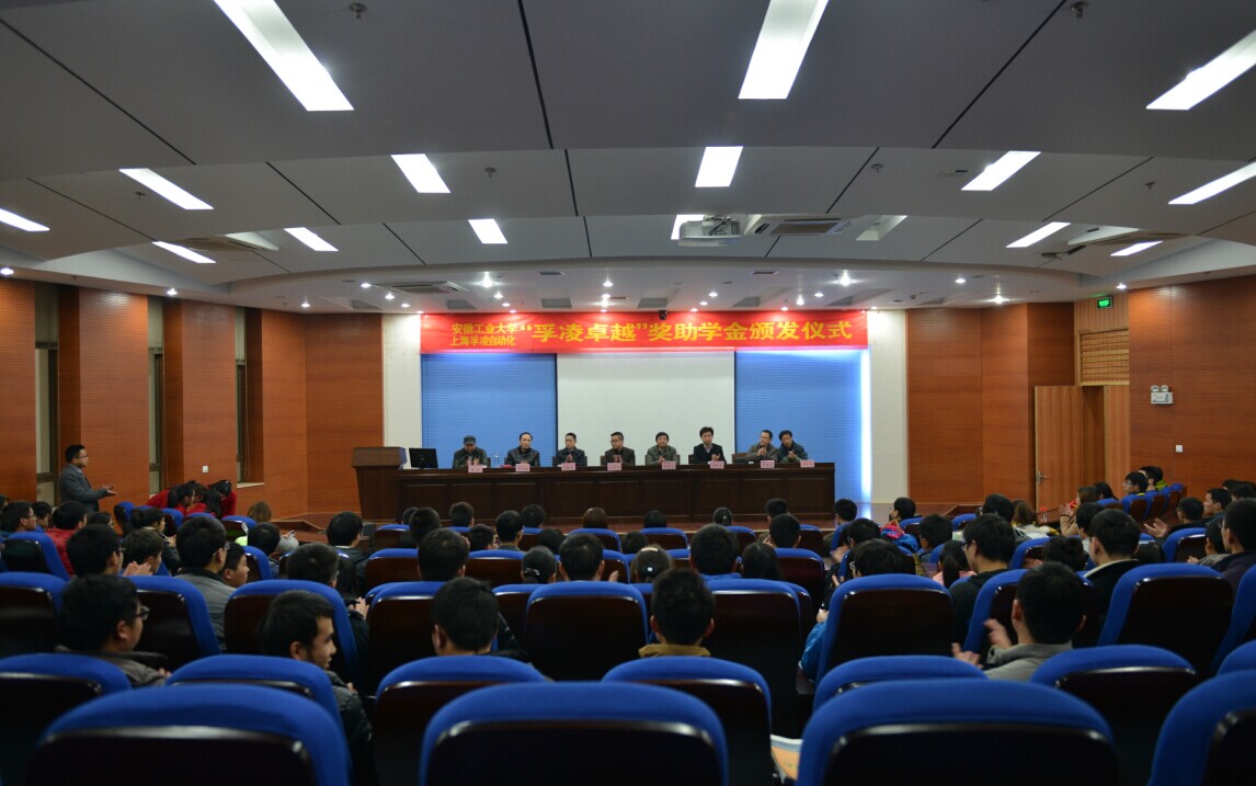 1月4日下午,安徽工业大学上海“孚凌卓越”奖助学金2013-2014学年颁奖典礼在秀山校区图书馆一楼报告厅隆重举行。上海孚凌自动化公司董事长彭正伟先生、总经理刘柯韦先生,学校教育发展基金会办公室主任单桂锋,六合彩网上投注app下载中心
