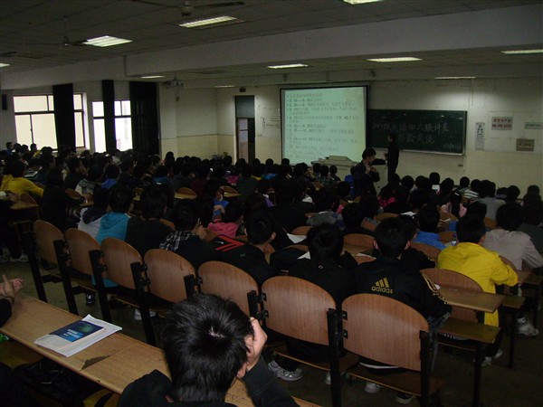在英语四六级考试中取得高分的优秀学生代表—08级吴庆波和王梦迪分别给10级的学弟学妹介绍了英语学习和考试中应该掌握的方法和技巧,他们真诚的态度和亲切的风格感染了在场的每一位同学,带动了同学们学习英语的热情,增强了同学们备战四六级考试的信心。10级同学在此次讲座和经验交流后,纷纷表示要以更好的态度学习英语,更加努力准备英语四六级考试。(李冉)