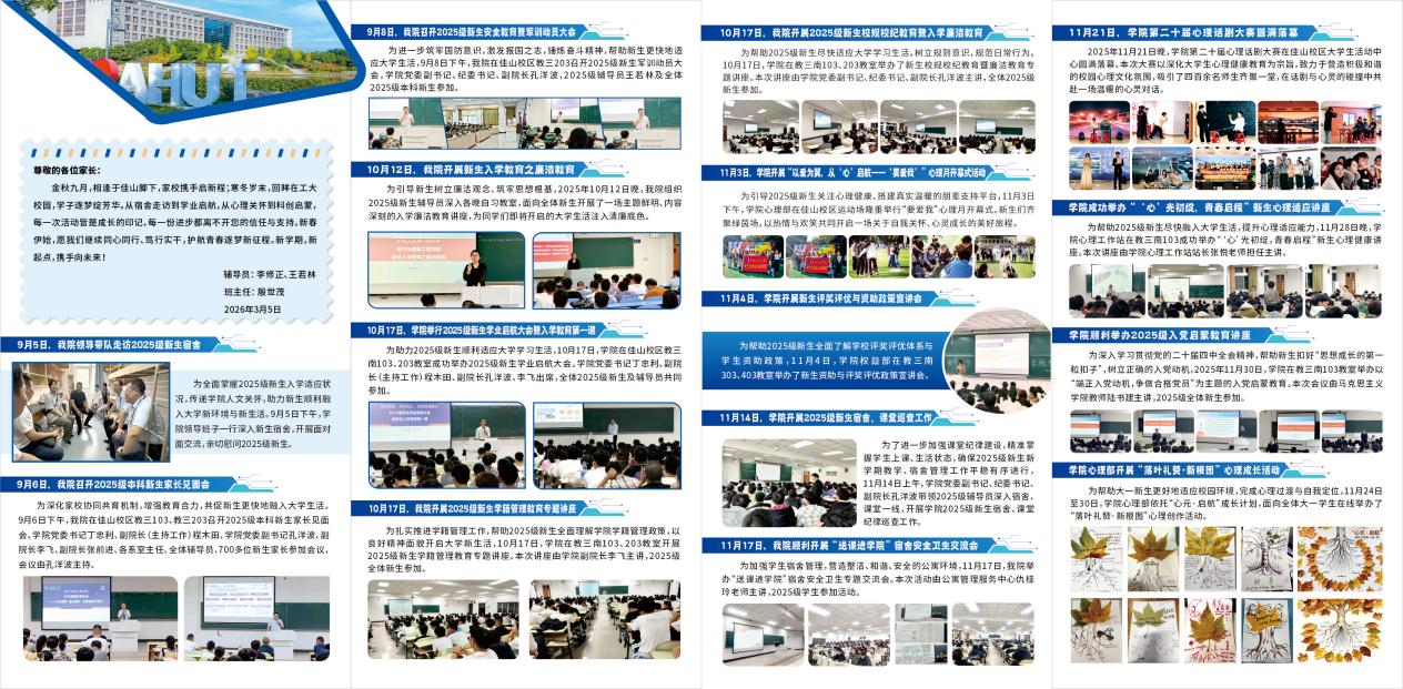 气255班将新生入学以来的成长点滴汇编成《2025级气255班活动剪影》,通过家校渠道推送后,收获了家长们的广泛好评与暖心赞誉,进一步凝聚了家校育人合力。