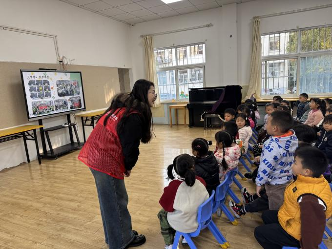 研究生学术型党支部党员、安徽工业大学第25届研究生支教团成员侯静静同学担任主讲,安工大幼儿园全体大班的小朋友以及老师们参加了活动。