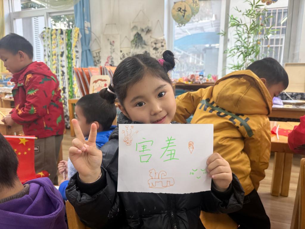 暖场之后,“情绪小火车”游戏将活动推向高潮。小朋友们分成3组,每组排成一列“小火车”,由志愿者站担任“火车头”。志愿者们展示了精心准备的“情绪小卡片”,卡片上“开心”“难过”“生气”“惊讶”等简单汉字清晰可见。各组小朋友轮流抽取卡片,结合自身经历分享情绪,在“大朋友们”引导下,孩子们学会了识别和理解不同情绪,童言稚语中洋溢着纯真与智慧。