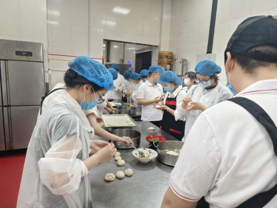 活动中,后勤的师傅们为大家精心地准备了粽叶、糯米、擀皮、包馅等食材,并以包包子为例细致讲解了揉面、切块、擀皮、包馅等一系列制作技巧。同学们仔细聆听,跃跃欲试,眼神里满是对美食制作的向往。在师傅的指导下,学生们纷纷动手实践,开始制作粽子和包子,大家一边忙碌于折叶、放料、揉面,一边交流着制作心得和生活趣事,现场充满了欢声笑语。有的学生是面食制作的高手,手法娴熟,制作的包子形状饱满、褶皱有序美观,引来阵阵赞赏;有的则是初次尝试厨艺,虽然动作稍显生疏,但热情不减,反复练习制作技巧,最终也能制作出有模有样的成品。