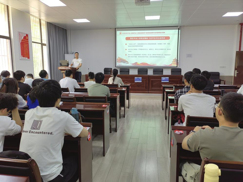 学生测控党支部联合学生电气工程党支部在秀山校区电气楼113教室开展深入贯彻中央八项规定精神学习教育专题党课。党课由学生测控党支部书记杨恒基主讲,支部全体党员和本学期发展对象参加。