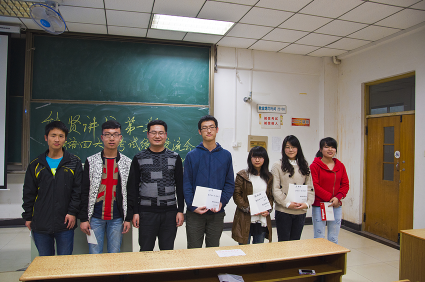会前,辅导员徐悦和尚全邀请了向秋炜、何流、童子昂、鲍胜楠、鲁珍珍、武梦娇等六位本年级英语四六级考试获得高分的同学走上能贤讲坛,讲述他们的复习之路和应考经验。六位同学分别就英语学习兴趣、大学英语学习、四六级复习技巧、考试备考技巧、考试流程等方面,结合自身经历向大家做了详细说明。